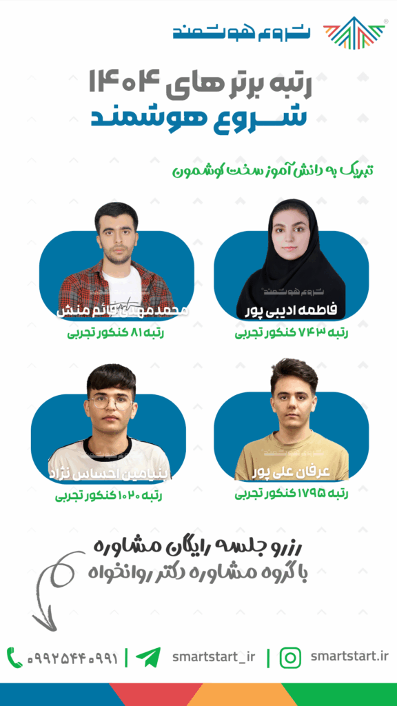 نفرات برتر آموزشگاه در کنکور ۱۴۰۴